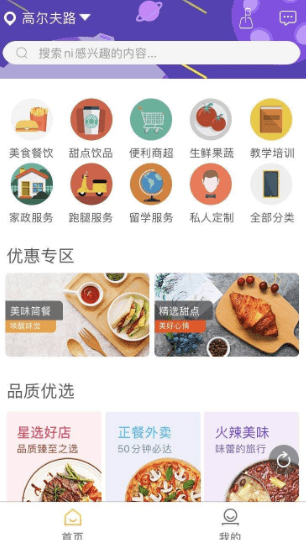 1.为您提供送餐,日用品,超市百货等服务,您无需离开家即可吃遍全城。