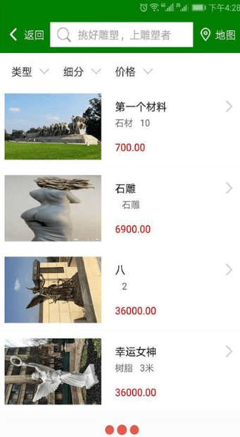 可以快速定位自己的位置信息,通过地理位置查找自己喜欢的雕塑商品;