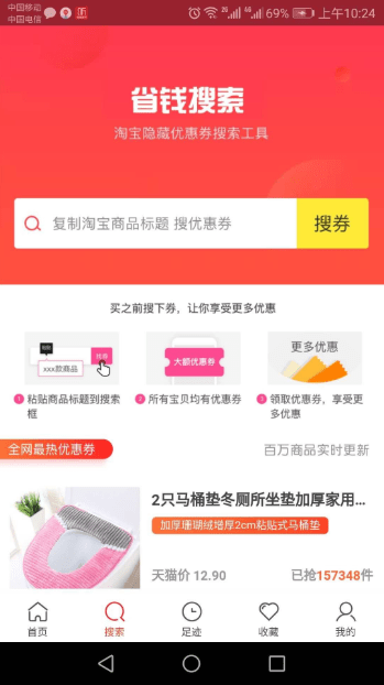 4、每天会更新上百款带有内部优惠券的商品,数量多,产品全,优惠券天天送!先领券,再下单,比别人少花钱!淘宝网省钱购物APP必备软件!