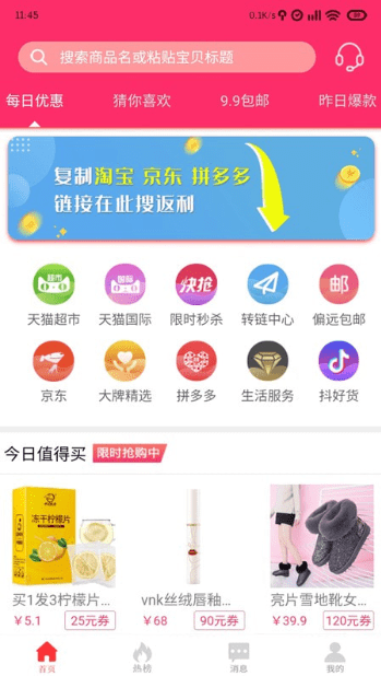 3、1元购专区,用券后只要1元的超低价商品,价格便宜质量有保障,7天无理由退换!