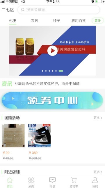 全场商品价格实惠,拼团购物更省钱。农资产品、农用百货、房屋装修、水产禽畜养殖、家用电器、日用百货、粮油米面等多种品类,满足你的一站式购物需求,健康新生活,宅家购好物。