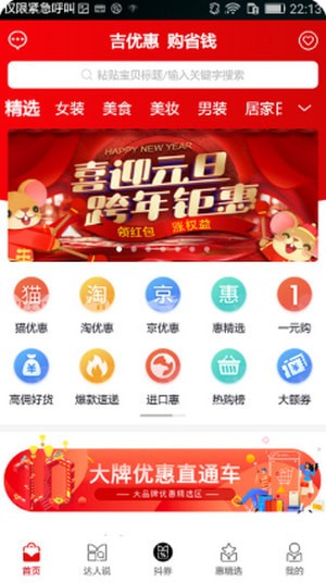 吉优惠是一款专门的网上购物app,这里有着大量优惠活动,这里有着大量的优惠活动,这里会是你购物的最好选择,这里有着众多知名品牌的折扣商品,用户上线即可领取优惠券,快来下载吧!