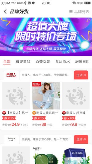 4、品牌特卖:千余家知名品牌,服装、美妆、居家、母婴、食品、鞋包、数码电器任意返!