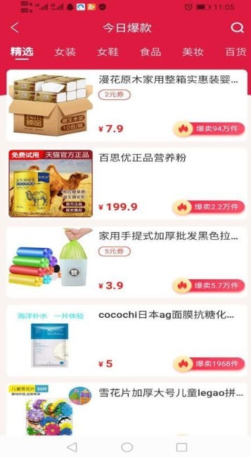 1、优惠网购:提供了更多不同类型的商品优惠券,直接按照商品的关键词去搜券即可;