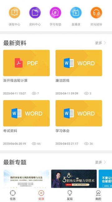 课程:任务、讨论、考试助您轻松修学分;