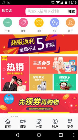 3、超高返利:专业买手选款,职业砍价,超高返利95%,等你来任性!