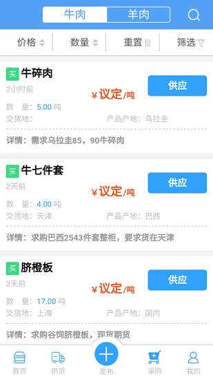 一款涵盖牛羊交易的信息服务平台,大量的供求信息满足用户对买卖的需求,同时整合牛羊肉行业中供应链金融、贸易商、加工厂、餐饮商超、仓储物流、批发商,打通行业服务通道,让牛羊肉交易更方便、更可靠、更快捷。