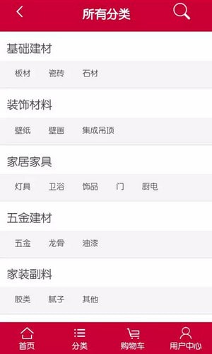 【热销商品】涵盖家装装修的全部品类,涂料、墙纸、地砖、吊顶、五金、防水、卫浴、厨具、门窗、灯具、家居,应有尽有;商品搜索,寻找附近商家,一件询价,在线报价,掌上选建材。