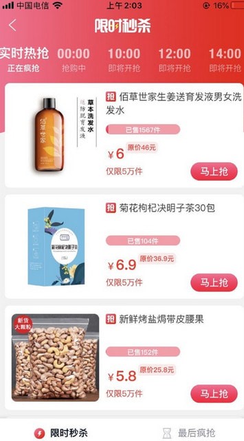 3、限时精品随时开抢,网购福利人人都能享受,省钱秒选大量优品。现在就来购物吧!