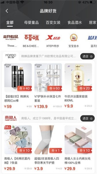 方便的类目导航和精准搜索功能,轻松地在7万品牌中定位心仪宝贝,享受购物生活。