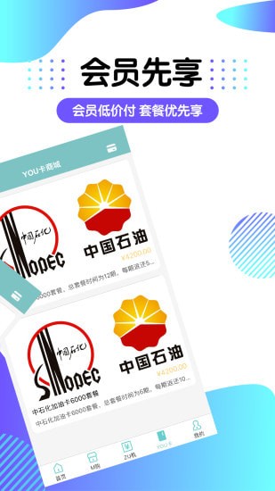 【YOU卡服务】:超低折扣加油套餐,会员可享受套餐先享,会员等级越高次数越多。