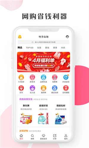 竹子众淘app能给帮助众多国内网购爱好者,辅助用户们成功省钱,下单购物体验超群。通过APP随时都能参与网购,下单秒选低价精品,付款保证省钱省力。通过在线平台随时都能购买低价商品,特价优惠券自由领取,折扣福利不要错过了,大量高额度优惠券等你领取。