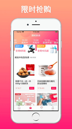 新增限时抢板块,购物得大额返利,商品限量0元抢,各种好物限时抢购,抢到就是赚到