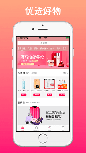 2、平台汇总了大量潮流商品,品牌好物不容错过,样样保证都是一流精品,快来抢购下单吧!