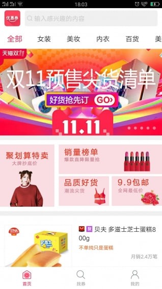 4.你想要的优惠这里都有,是购物网购必备省钱神器;简洁的购物界面,让购物从此变得简单。