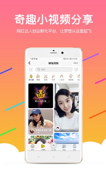 达人可以通过视频分享展示自己的灵动创意、才艺喜乐、心水好物或者带着大家一起去领略世界各地美丽的风景、独具魅力的风土人情以及一切新鲜的事物。充分展现自己的同时,还可以和志趣相投的粉丝互动交流,结伴同Go,快意人生!