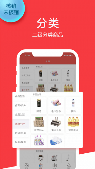 分类功能,所有的商品都进行了详细的类别分类,便于寻找时更加的便捷;
