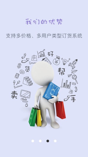 快销订货是一个提供第三方服务的购物app,它的定位是提供平台服务,提供功能服务,提供人工评价和客服,其他都是上面的商家自主去完成这些的。