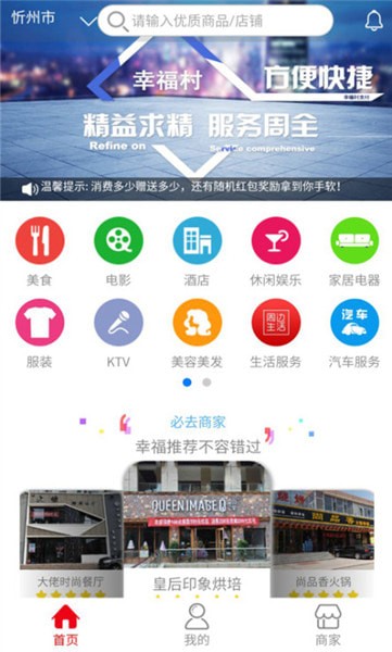 幸福村app是一款好用省钱的电子商城,利用该软件的精准定位而准确的向用户提供自己的周边的好商店,例如您所在城市的美食、电影、酒店、休闲娱乐、家具电器、服装等周边的线上消费,更好的让消费者寻找到所需要的信息,并会提供周围商家的与用户的距离、详细地址、评分、电话、店面图等资料,同时通过幸福村app消费还有随机红包奖励可以拿,欢迎有兴趣的用户们免费下载体验。