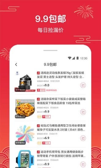 2.多种板块,多种风格,咚咚抢,小编说,9.9包邮,每日半价,疯抢排行,今日上新。打折、导购、返利、团购、优惠,一大波白菜价折扣商品、值得买的好货迎合每位用户喜爱。