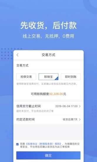 3、在平台购买带有“保”字标识的商品,可享受买家保障服务。缓解资金周转压力。选择带有“赊”标志的商品进行赊销交易,每笔赊购30天内无利息,保险公司承保,平台补贴保费,最高可赊购100万。
