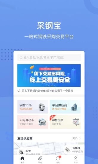 采钢宝是一款不错的一站式钢材采购查询软件,海量钢材资源任你采购,而且还提供多种报价,平台汇集了近千家不同钢厂,一键就能轻松进行价格比价筛选,有需要的朋友可以下载试试!