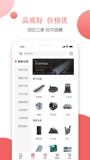 ——主打桥梁工程材料、隧道工程材料、地铁工程材料、水利工程材料和路基路面材料等类目。