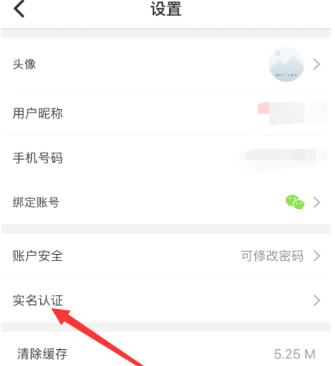 进入设置后,如下图红标位置所示,点击页面中的实名认证入口进入。