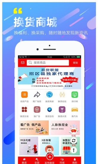 易货联盟平台是一款独特的换货商城,全新的产品互换、人脉互换、共同营销的平台,在这里什么都能换,你能看广告来换产品还能通过人脉资源来换取现金,感兴趣的朋友可以下载了解下。
