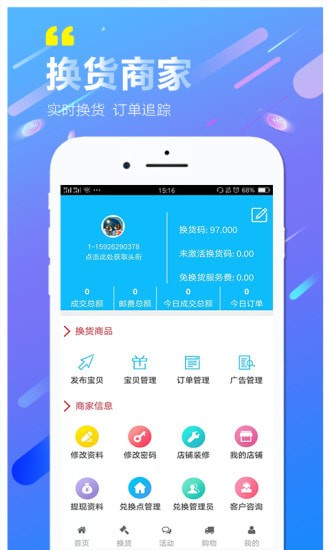 是在传统卖货店基础上增加社交新零售、调换货业务,是一家线上线下结合的连锁易货店。让顾客更好地从线上了解产品,线下体验拿货,实现全球换商品、换人脉、换现金、换广告、换跨界。