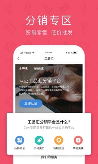 工品汇是一款专注于MRO工业用品采购的手机应用。分类选型,品牌查价,企业直采,贸易批发,一站式采购。