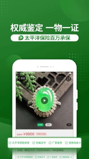 与太平洋保险公司签订百万保价协议,保证所有商品均为天然翡翠,均附带国家权威机构质检证书,支持全国复检。
