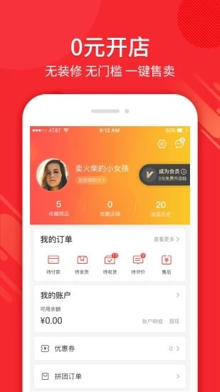 0元开店,用户可以通过分享商品吸引客户购买由此实现开店赚钱;