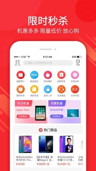 进入首页查看限时秒杀,能够低价抢购品牌手机