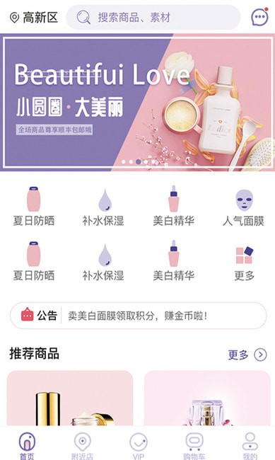 小圆圈大美丽app是为广大消费者提供日用化妆品的高端消费平台,致力于为用户带来美丽,适合想要学会化妆和护肤的学生党,也适合工作繁忙需要补水护肤的白领,为用户推荐优质的产品,让你花最少的钱,买到最好最实惠的优质化妆品,为你的美丽升级,软件提供的化妆品保证无害,拥有最专业的服务系统,为用户提供优质的线上服务和线下服务,为你定位附近的店,以方便喜欢进店消费的顾客;更多优惠活动不定时开启,让你享受购物,享受更多优惠,成为一个更美丽的人。