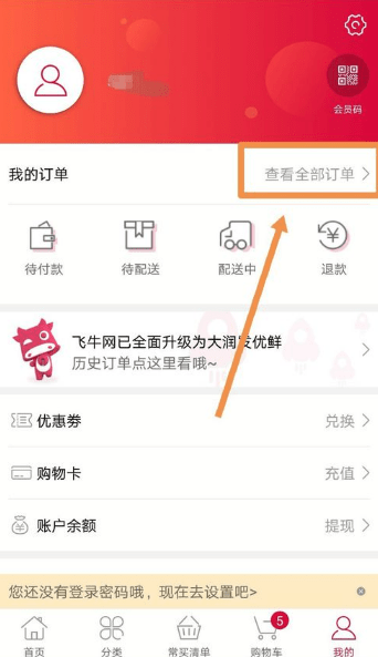 在之后的界面中可以看到我的订单后面的查看全部订单字样,点按进入。