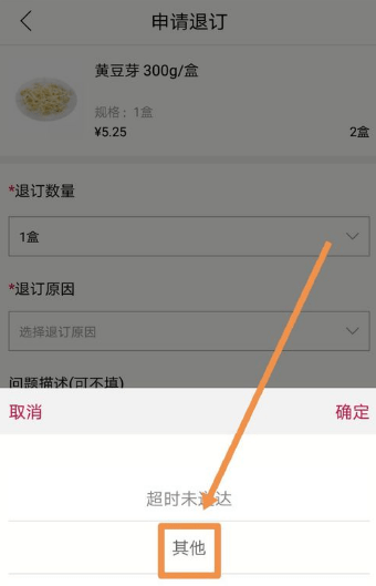 由于没有退订原因是缺货这一项,所以选择其他,然后点按确定。