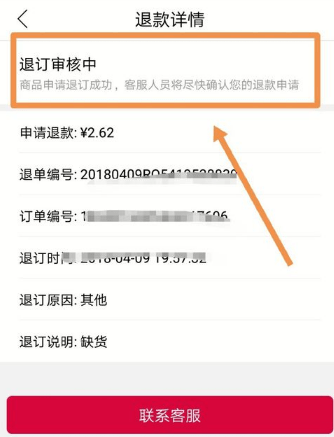 之后界面户显示退订正在审核中,等待即可。