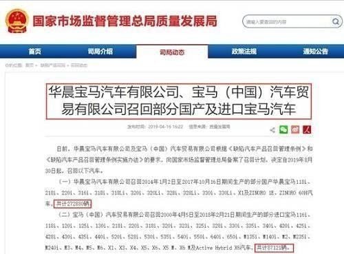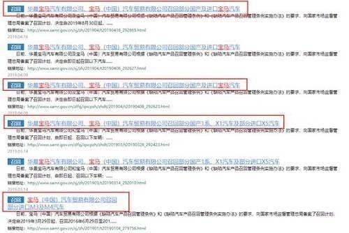根据国家市场监督管理总局的召回通知显示,宝马自进入2019年以来,已经连续发了4次召回通知。