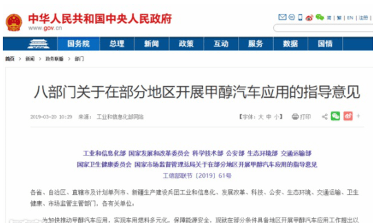 国家八部门联合发文鼓励甲醇汽车应用