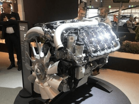2018年汉诺威车展,斯堪尼亚展出了多款新能源卡车和动力,其中这款16升V8发动机可以使用多种燃料,包括柴油、生物柴油、甲醇,最大输出可达730马力,最大扭矩可达3500N.m。这也可能是未来新能源发动机的一个发展方向。