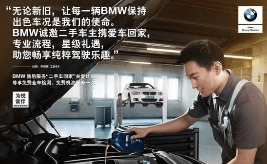 以高品质的服务赢得客户的信赖,是BMW售后服务在豪华车后市场中保持领先的根本和基石。BMW推出的一系列创新服务受到了消费者的广泛好评,例如长悦保养服务、延长保修服务、全方位客户出行尊享用车、终身事故救援等。此次全新推出的“二手车回家”关爱计划,BMW能够对易手后的广大二手车发出“召集令”,让它们重新回到BMW的大家庭,享受原厂同等品质的售后服务,再次印证了BMW对全体车主的贴心关爱。