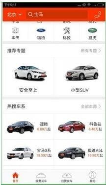 点进您看中的车的资料里,可以看到有个可分期,点击可分期,就可以分期的信息,首付和月供信息的呦