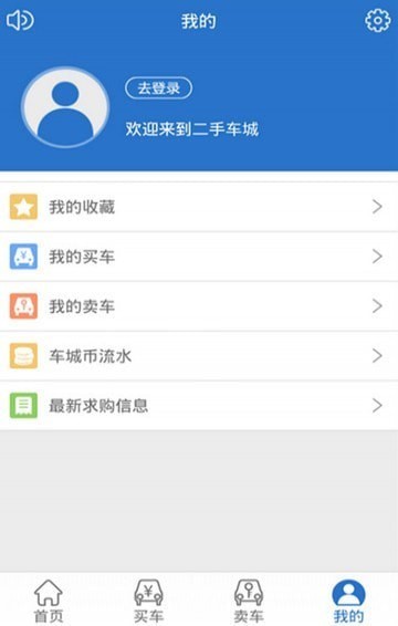 我的:登录后,可查看您收藏的车源您发布的车源,您的车城币实用情况等。我们的app有充值功能,充值后进入我的卖车,选择车源实用车城币推广您的车源。
