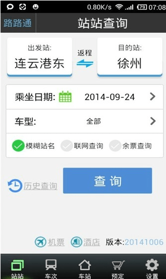 进入路路通手机版,输入始发地即可查询车票信息,包括始发时间、票价、站点信息等等。