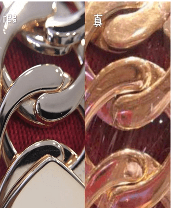 假货—边角处理过于粗糙,镀层不均匀的问题明显暴露在灯光下,整体五金的质感廉价。