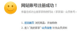 第四步:网站账号注册成功!您可以返回首页浏览商品,开始购物;或者进入“我的家家”-会员信息补充会员资料