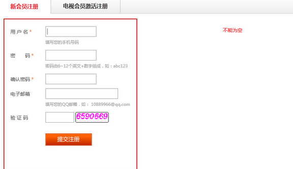 填写用户名、密码、确认密码、电子邮箱、验证码;用户名请填写您的手机号码;密码由6~12个英文+数字组成,如:abc123;电子邮箱填写您的QQ邮箱,如:10889966 qq.com。
