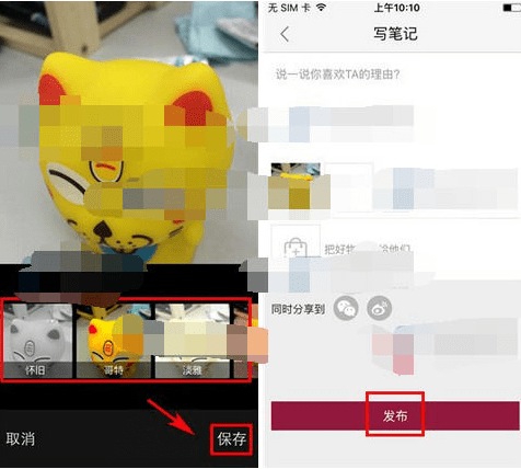 根据需要选择【滤镜】,然后点击右下角【保存】,编辑笔记内容后点击下方【发布】即可。(如下图)
