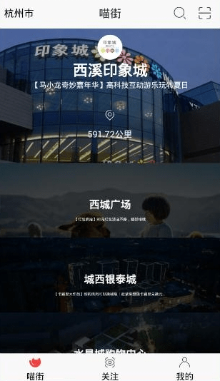 打开喵街app,在喵街,您可以查看您附近的商场及其品牌门店,提供吃喝玩乐购一站式服务